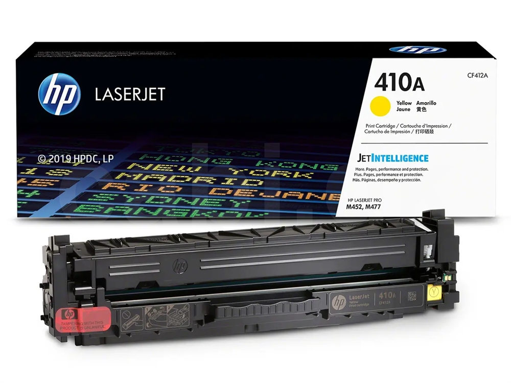 Original HP LaserJet Printerpatron med typebetegnelse No. 410A og HP varenummer CF412A.