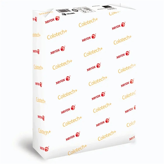 Xerox Colotech+ er topkvaliteten til laser farveprint og 4-farve digital fotokopiering. Den glatte og silkebløde overflade garanterer perfekt resultat i både laser- og inkjet printere. Xerox Colotech+ er HP ColorLok godkendt og FSC mærket.